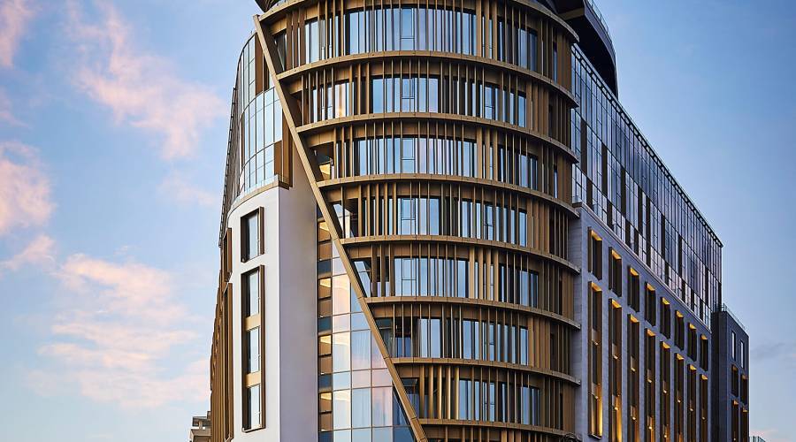 The Royalton Habana Paseo del Prado hotel simulates a refined boat and welcomes visitors at the entrance to Havana bay. The brand new hotel with maximum comfort accommodation, is located right at the intersection of the busy Paseo del Prado and the Malecón, has facades with large glass windows, and 10 staggered levels, where there is the “bow of the ship”, a viewpoint which offers impressive views of the boardwalk, the Castillo de los Tres Reyes del Morro and the fortress of San Salvador de la Punta, as well as the historic center. The Hotel has, among other singularities, the elegant design of the rooms, inspired by classical ballet, salsa and Cuban son, in its refined decorative style also characterized by glamor and avant-garde.