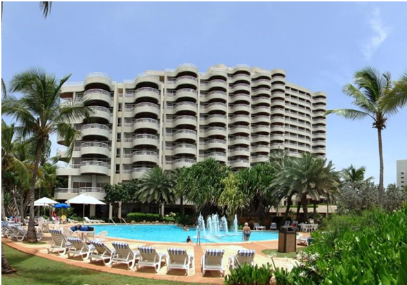 Venetur Margarita is a hotel that offers 333 rooms and 154 suites, all with ocean views and equipped with air conditioning, cable TV and bathroom with hot water. Amenities include a poolside bar, buffet breakfast, and a swimming pool. It is known for its excellent view and variety of breakfast options.